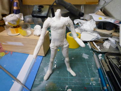 ボディの作製。素体を作ってからポーズを決めて切り貼りします。